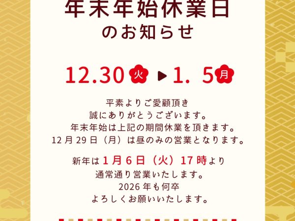 - 年末年始休業のお知らせ