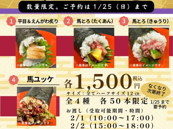 尚、天候や仕入の状況により内容を変更する場合がございます。事前に電話でご確認頂きます様お願い致します。