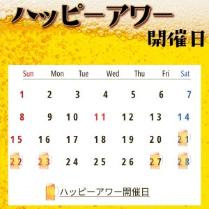 【開催日限定】ハッピーアワー開始(17:00〜19:00)